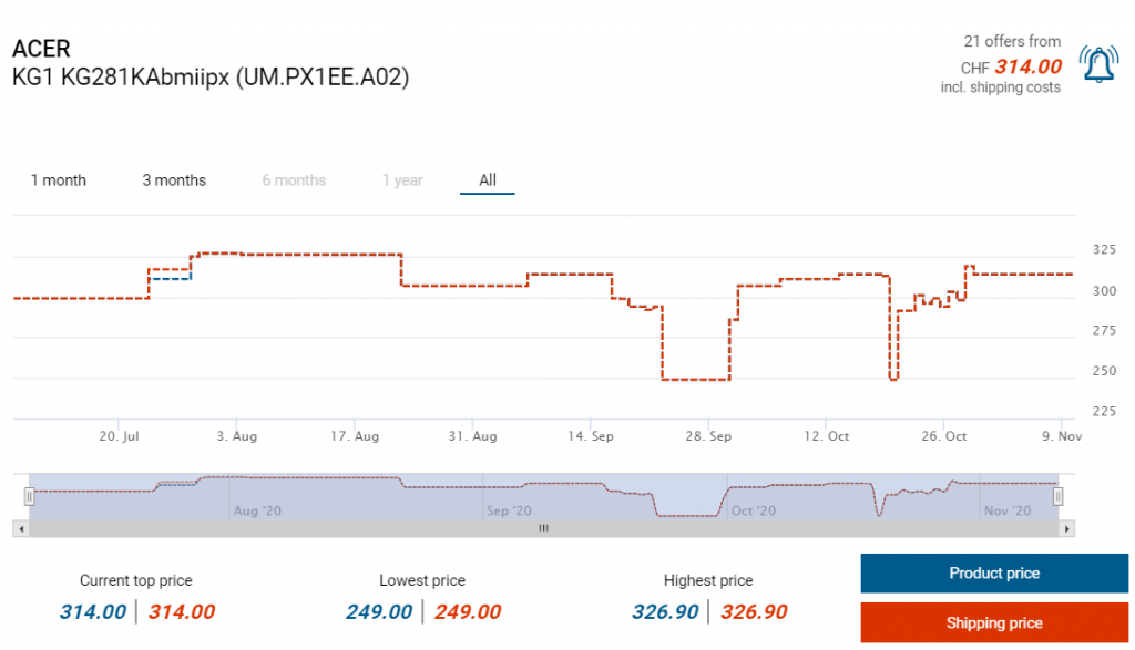 Bei Amazon gibts derzeit ein weiteres starkes Angebot. So gibts den UHD-PC-Bildschirm Acer KG1 zum neuen Bestpreis von 216 Franken. Laut toppreise starten die Preise für dieses Modell ansonsten bei 314 Franken, der Bestpreis soll bisher bei knapp 249 Franken gelegen haben.