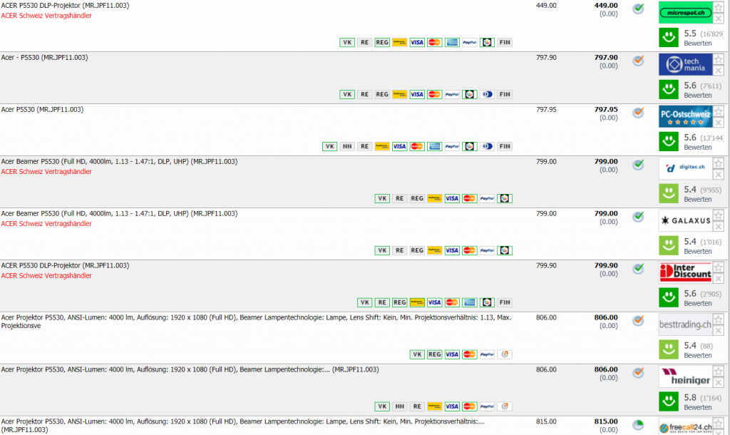 Bei microspot gibt’s den Full HD Beamer ACER P5530 mit 4000 Lumen gerade für CHF 449.- Zweitbester Preis im Moment beträgt CHF 797.90, Bestpreis war bei CHF 599.90