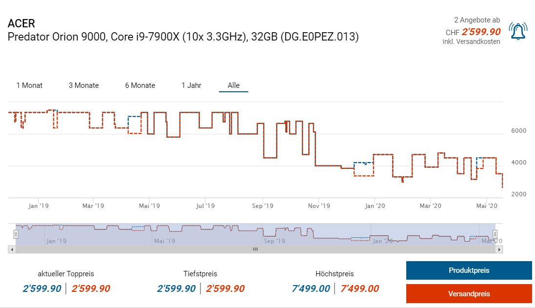 ähh... bei microspot gibts diesen für knapp 6`000.- Du willst ihn für 3200.- gesehen haben? Sicher dass du das motdeil mit 2x TRX2080Ti, 64GB, 1024SDD, 3TB HDD wie in meinem Link meinst?