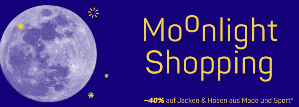 Bei Ackermann gibt es wieder einmal ein Moonlight Shopping, bei dem ihr bis zu 40 % Rabatt auf ausgewählte Jacken und Hosen aus Mode & Sport erhalten könnt. Folgt einfach dem angegebenen Link.