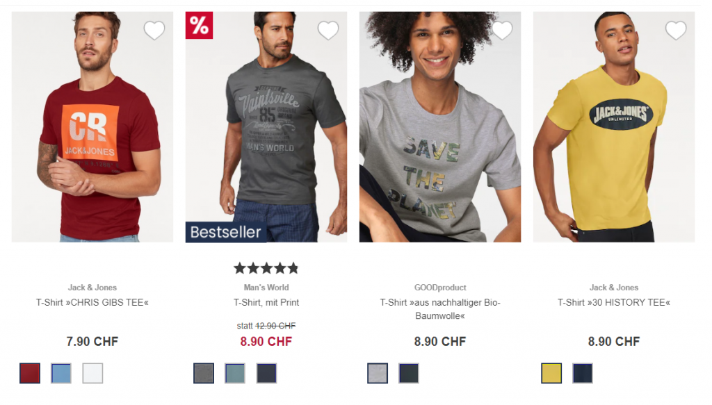 T-Shirts von Jack & Jones gibt’s so beispielsweise ab CHF 5.55