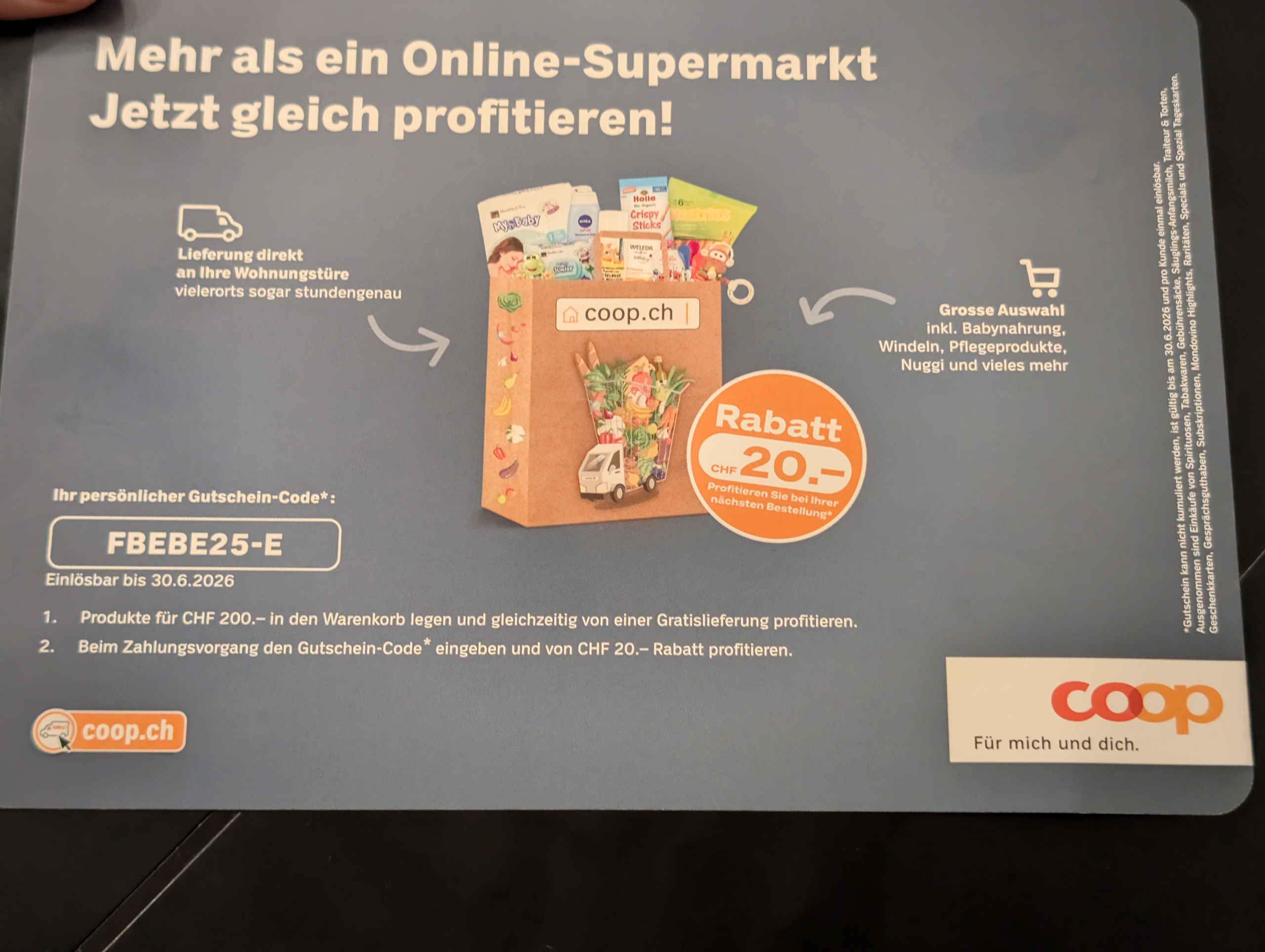 Hinweis: Den Gutscheincode könnt ihr bei der Kasse eingeben, sobald ihr die 100 Fr. überschritten habt. Habe es davor versucht, da wird er aber noch nicht angenommen. Also sicher für 100 Fr. einkaufen 😉