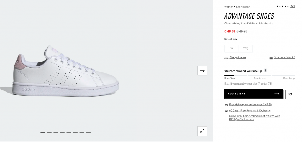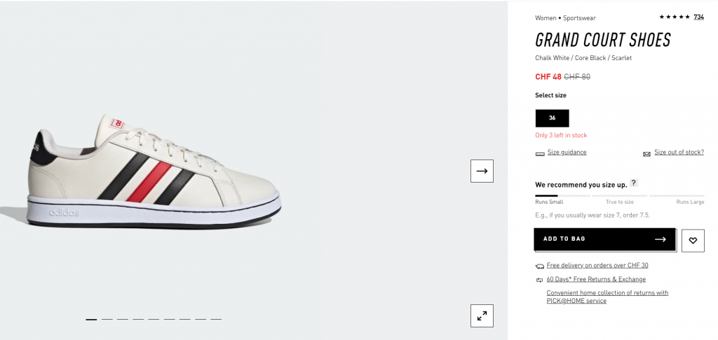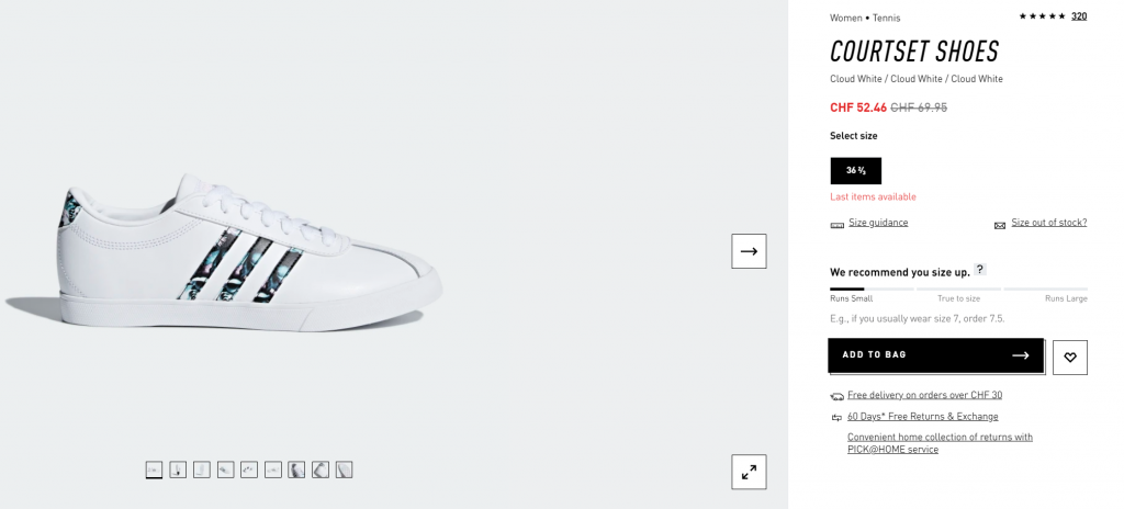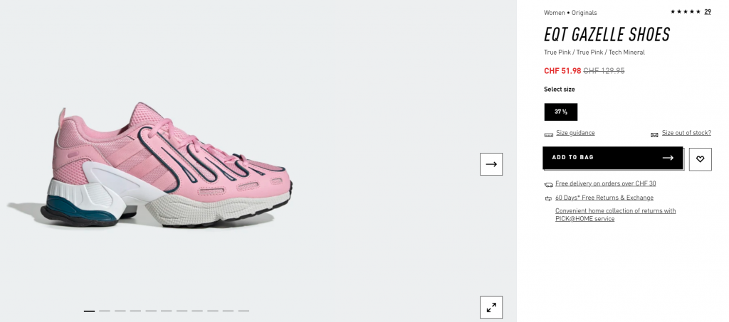 Bei Adidas gibt’s diverse Damen-Sneakers zu sehr guten Preisen, wen man den personalisierten Preispirat-Gutschein einsetzt. Leider sind bei einigen davon nur noch gewisse Grössen oder kleine Restmengen verfügbar.