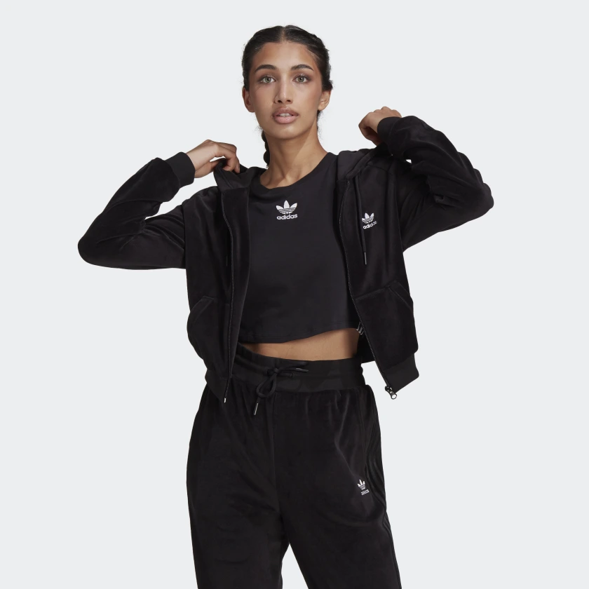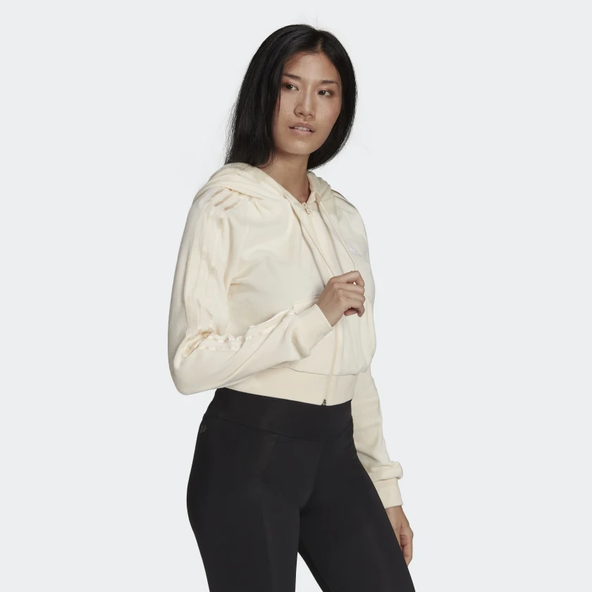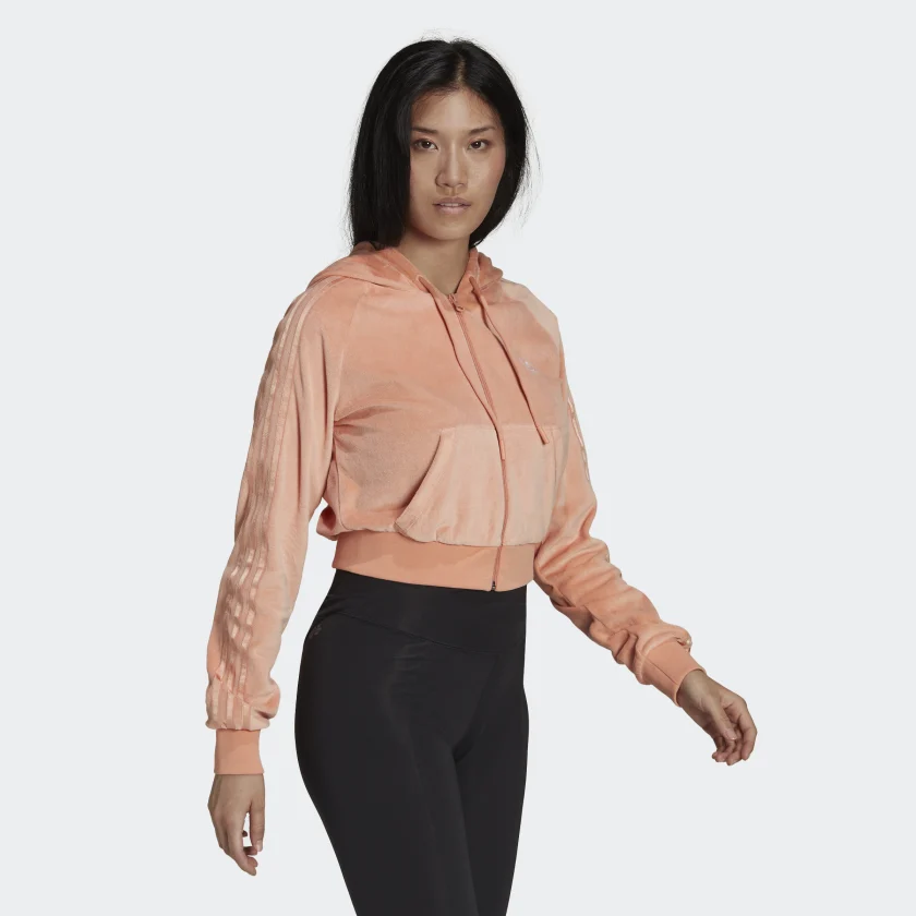 Adidas LOUNGEWEAR CROPPED Kapuzenjacke in Schwarz, Pink und Weiss bei Adidas