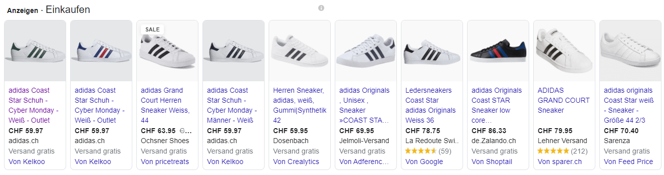 Im Adidas Shop gibts derzeit die Unisex-Schuhe Coast Star zum attraktiven Preis von knapp 50 Franken. Wenn man die Preise bei Google Shopping vergleicht, ist wohl Dosenbach mit CHF 59.95 der günstigste Zweitanbieter. Den 20% Gutschein könnt ihr über den Generator holen.