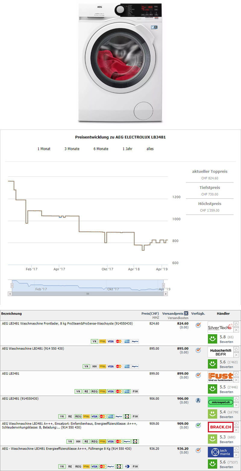 Bei Nettoshop gibt es als Tageshit die AEG LB3481 Waschmaschine (Türanschlag links) zum Bestpreis von CHF 474.05 wenn man beim Checkout den 5% Rabattcode PBW-5-1903 verwendet.