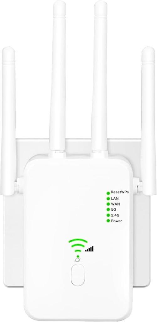 Dieser WLAN Verstärker erweitert dein WLAN-Signal effektiv und sorgt für eine stabile Verbindung in schwer erreichbaren Bereichen deines Zuhauses. Mit dualem 5 GHz und 2.4 GHz Band bietet er schnelle Übertragungsraten für Streaming und Gaming sowie zuverlässiges Surfen über längere Distanzen. Die einfache Plug & Play Einrichtung per WPS-Taste macht die Installation kinderleicht, während die vier externen Antennen eine umfassende 360° Abdeckung gewährleisten. Dank des LAN-Anschlusses kannst du auch kabelgebundene Geräte verbinden und die Netzwerksicherheit wird durch moderne Verschlüsselungsprotokolle gewährleistet. Das kompakte Design fügt sich unauffällig in jede Umgebung ein und das sichere Wärmeableitungssystem sorgt für einen zuverlässigen Betrieb ohne Überhitzung