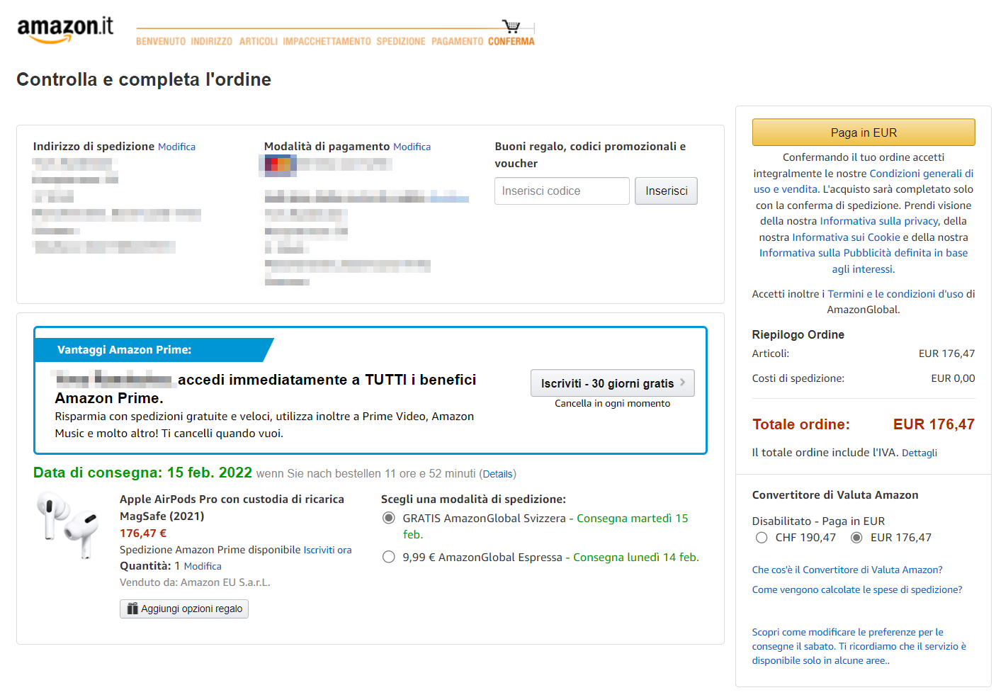 Bei "Überprüfen und schließen Sie Ihre Bestellung ab" lande ich bei 176,47€. Was mache ich falsch?