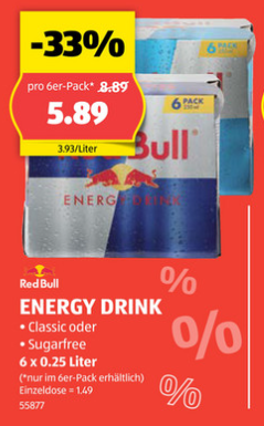 Ebenfalls interessant dürfte das 6er-Pack Red Bull für 5.89 Franken sein - damit zahlt ihr ca. 98 Rappen pro Dose! Zugegeben, die 24er-Packs gibt’s oft in Aktion, die kleinen 6er-Pack für Gelegenheitstrinker aber eher seltener.