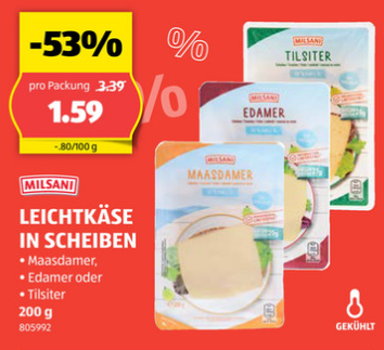 Los geht’s mit einigen tollen Lebensmittelangeboten. Ihr findet beispielsweise 200g Light-Käse (Maasdamer, Edamer und Tilsiter) zum günstigen Kurs für 1.59 Franken - perfekt geeignet für alle Gymbros und Gymsisters!