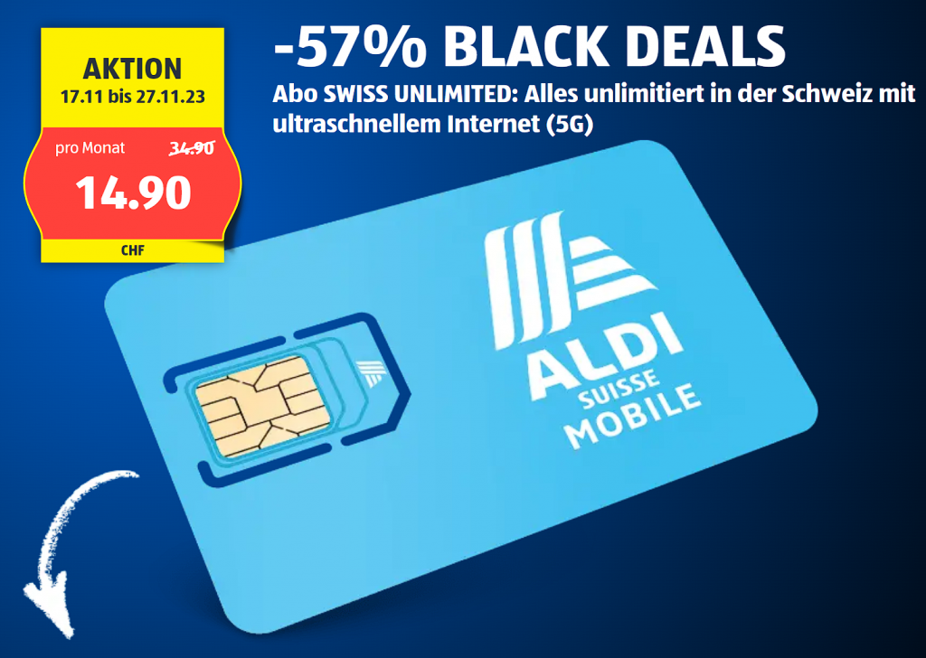 Sehr gutes Angebot für CHF 14.90, alles unlimitiert in der Schweiz mit 5G Internet Geschwindigkeit.