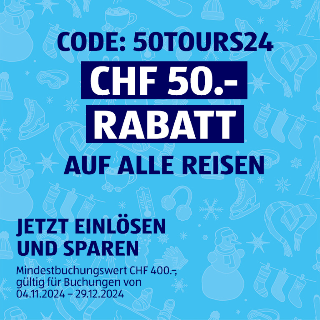 Bei Aldi Suisse Tours gibt’s aktuell wieder einen neuen Gutschein, mit welchem ihr von 50 Franken Rabatt profitieren könnt! Dieser gilt für Buchungen, welche bis zum 29.12. abgeschlossen werden.