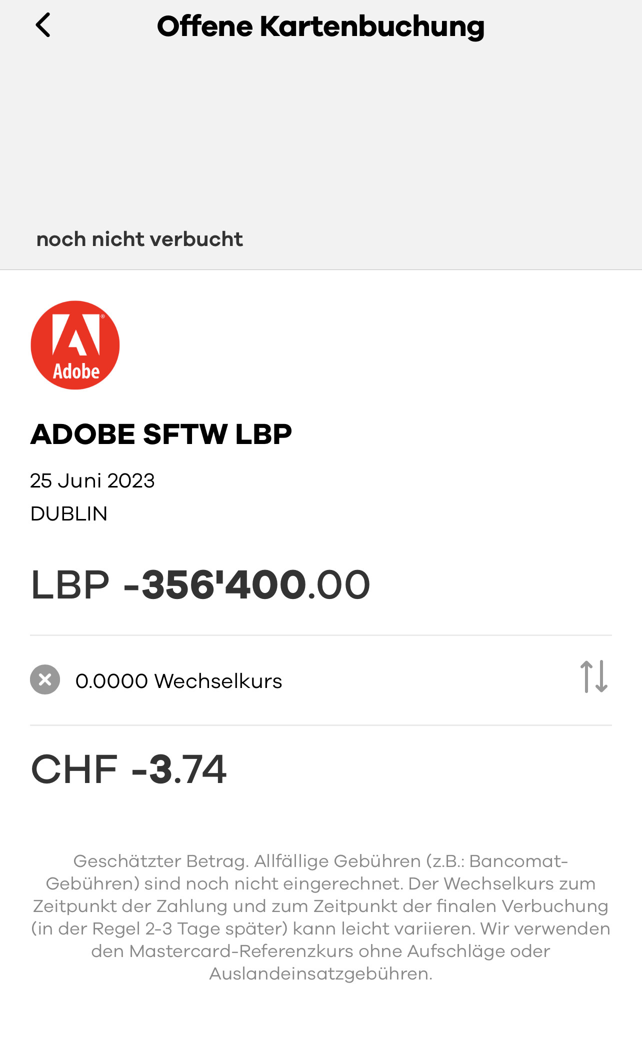 Dazu verwenden wir die Libanesische Adobe Seite und bezahlen entsprechend in Libanesischen Pfund: