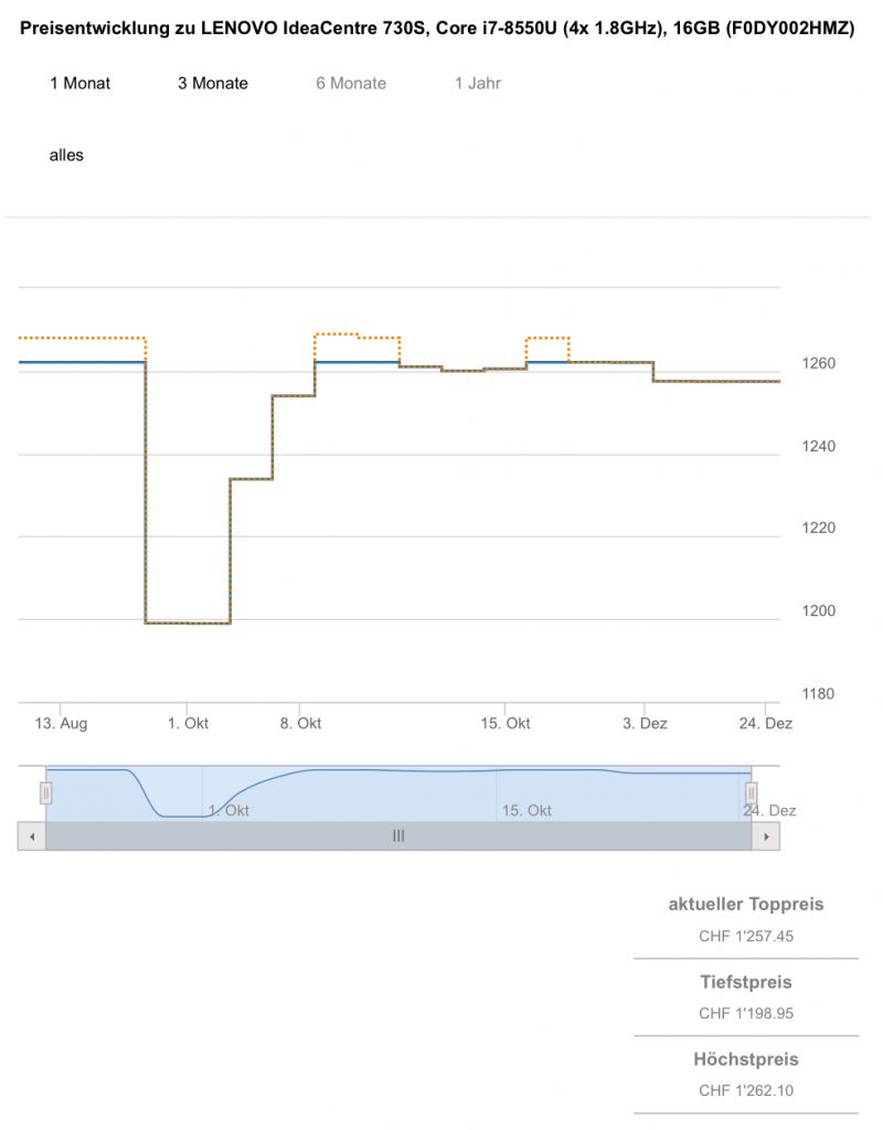 Gemäss toppreise war der bestprice bislang bei 1199.- CHF, der zweitbeste Preis liegt aktuell bei 1257.45 CHF.