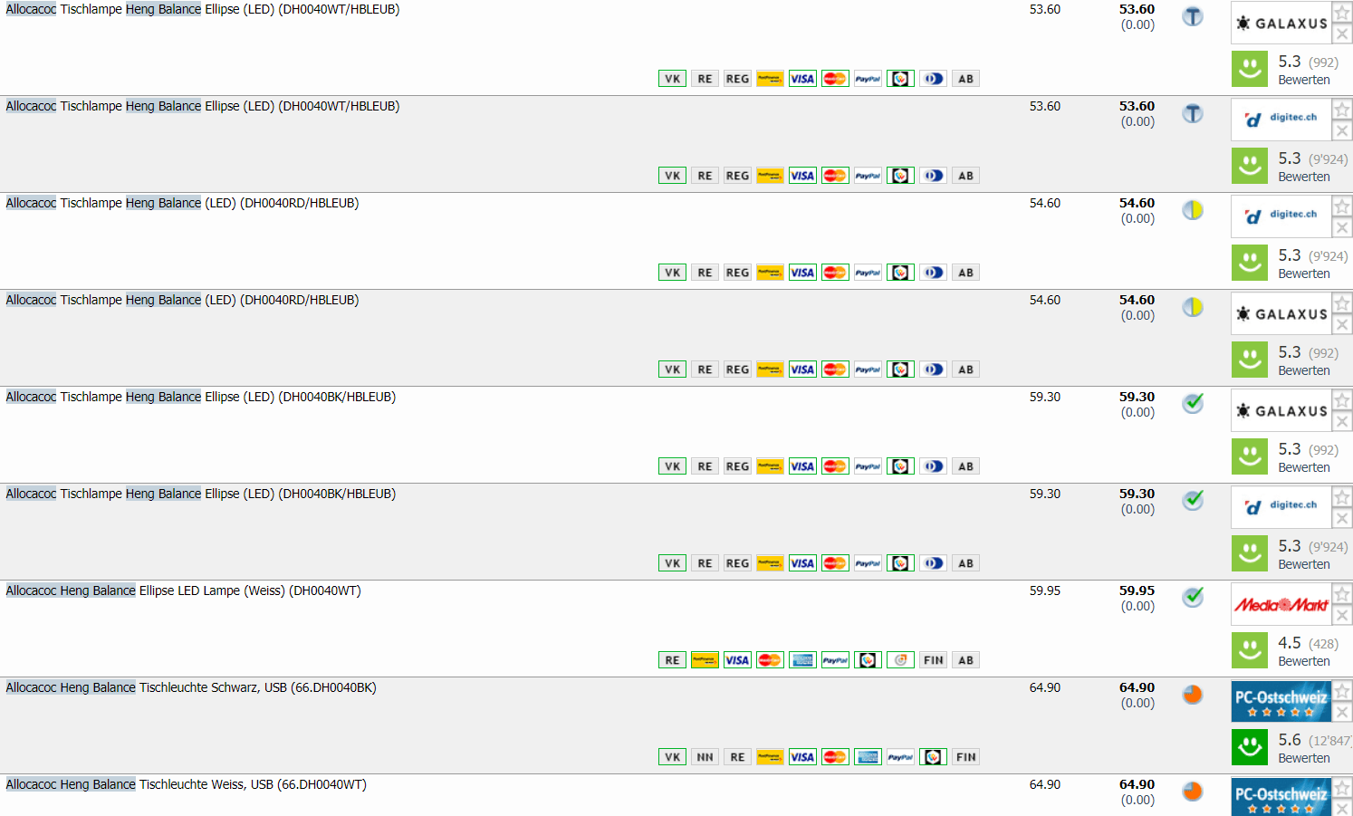 Bei DeayDeal gibt’s die Allocacoc Heng Balance Leuchte für CHF 39.- toppreise hat leider keinen Preisverlauf. Zweitbester Preis laut toppreise beträgt CHF 53.60