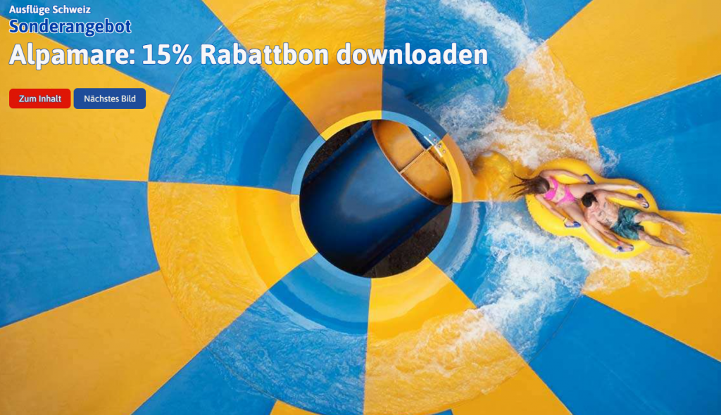 Alpamare Aquapark. Gestern habe ich den -15% Gutschein verwendet. Der Preis wird an der Kasse vor Ort rabattiert. Werde kaufen. muss an der Kasse vorgezeigt werden. Auf der Website gibt es mehr Details.