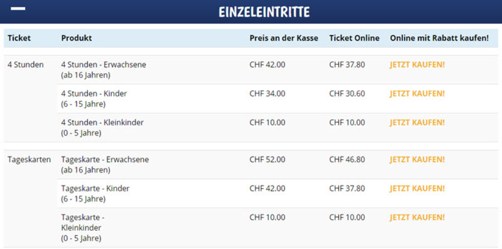 Bei Alpamare gibt’s gerade einen Sommer Sale: 40% Rabatt auf Tageskarten. Die Tageskarte für einen Erwachsenen kostet so noch CHF 31.80, Kinder CHF 25.80. Das ist das gleiche Angebot wie am Black Friday.