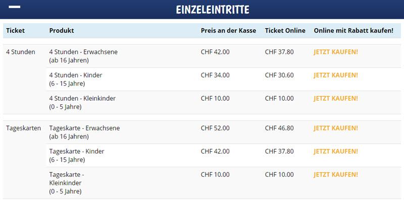 Bei Alpamare gibt’s gerade einen Sommer Sale: 40% Rabatt auf Tageskarten. Die Tageskarte für einen Erwachsenen kostet so noch CHF 31.80, Kinder CHF 25.80. Das ist das gleiche Angebot wie am Black Friday.