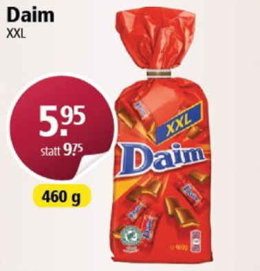 Auch interessant dürfte die XXL-Packung Daim sein, welche es für 5.95 Franken gibt. Soweit ich mich erinnere kostet diese in der Ikea normalerweise um die 8 Franken!