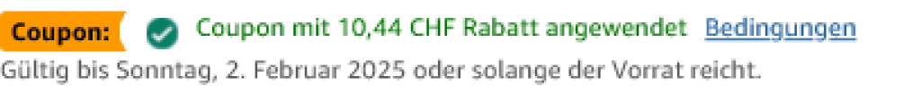 • Für Lieferungen in die Schweiz wird der Preis erst bei Angabe einer Schweizer Lieferadresse richtig angezeigt (Abzug der Mehrwertsteuer, zuzüglich Versandkosten) resp. beim Checkout an der Kasse (Amazon Frankreich, Italien, Spanien und Grossbritannien). Wir verwenden grundsätzlich den Interbanken-Kurs für die Umrechnung in CHF.