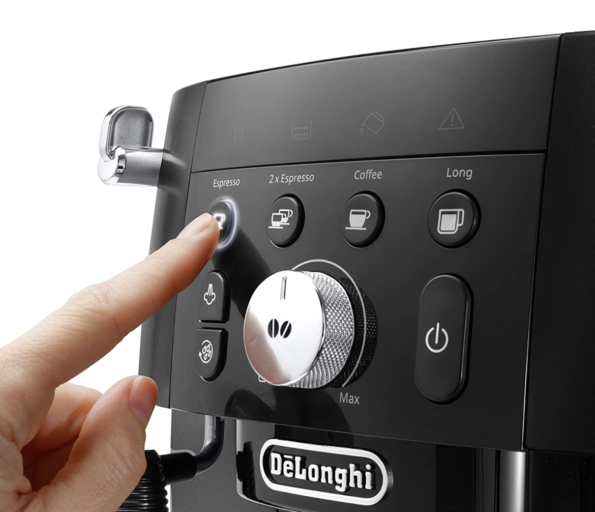 • EINFACHE BEDIENUNG: Intuitive Bedienung der De’Longhi Kaffeemaschine dank hinterleuchteten Direktwahltasten und Drehregler für die individuelle Einstellung von Kaffeestärke und Menge