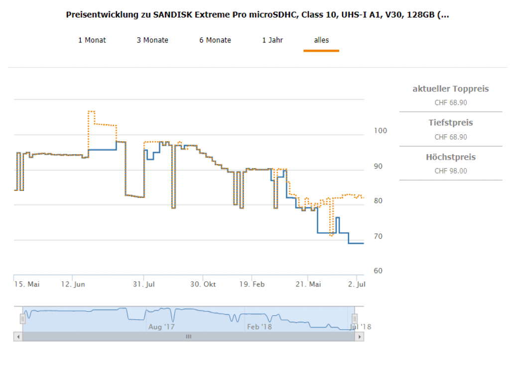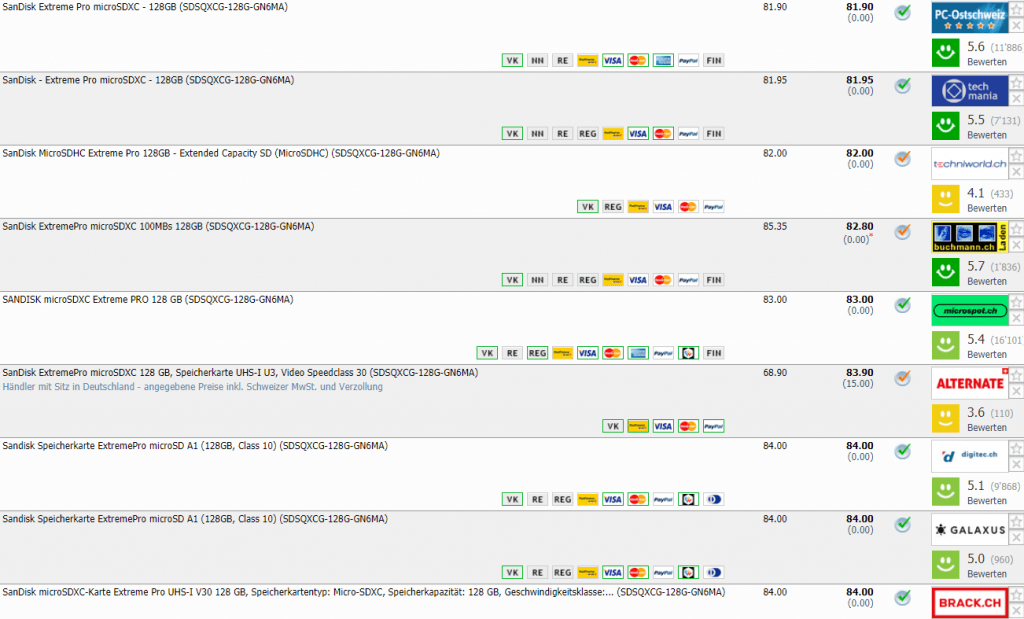 Bei Amazon Italien gibt es gerade die SANDISK Extreme PRO 128GB im Tagesangebot für 50,99 EUR (59,37 CHF). Durch den Abzug der italienischen Mehrwertsteuer kommt man zum Gesamtpreis von 41,80 EUR (48,67 CHF). Der Versand dauert zwar ca. eine Woche, ist aber kostenlos.