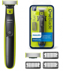 - Lieferumfang: 1 Philips OneBlade-Rasierer mit OneBlade-Technologie, 1 Ersatzklinge, 3 Stoppelkämme