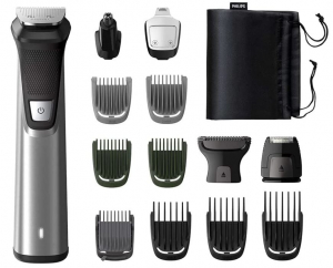 - Lieferumfang: Series 7000 Multigroom, 14 Tools, Reinigungsbürste, 8 Kämme, Trimmer, Ladekabel