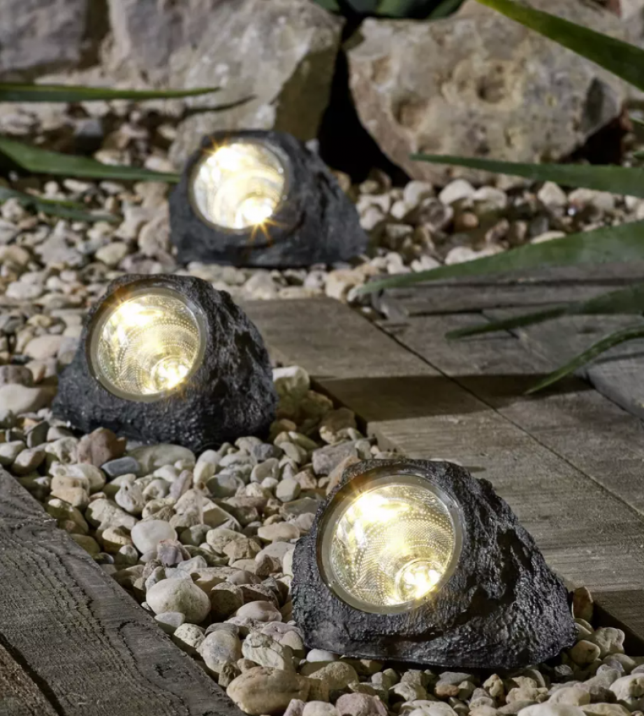 Diese Solarleuchte ist wie gemacht für Ihren Garten. Sie ist in Form eines Steins gestaltet und passt so perfekt auf die Wiese oder in Beete. Batterie- oder Solarbetrieb sorgen für einen flexiblen Einsatz. So leuchtet das weiße Accessoire auch in Zeiten, in denen die Sonne weniger scheint. Die integrierten LED-Leuchtmittel geben ein schönes und behagliches Licht ab. Einfach ideal: Die Solarleuchte kommt in einem praktischen 3er-Set. Schaffen Sie sich einen gemütlichen Außenbereich - mit dieser tollen Solarleuchte!