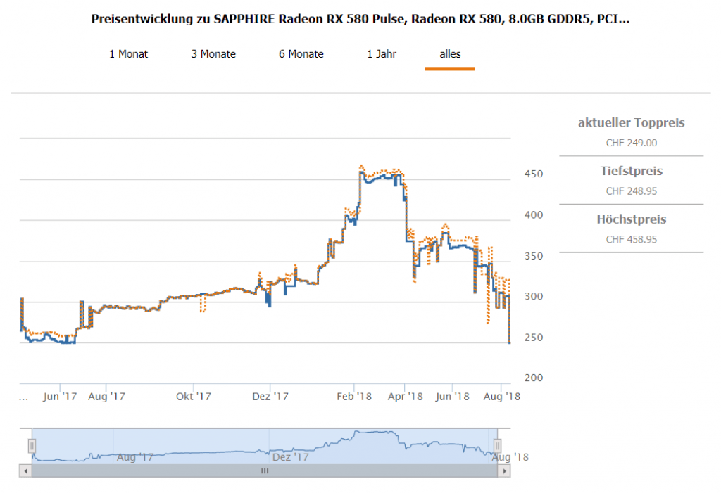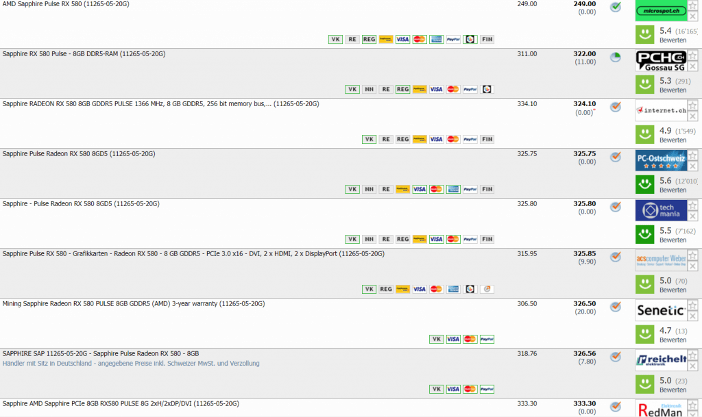 Bei microspot geht’s weiter mit den Grafikkarten-Deals. Mit dem altbekannten Gutscheincode HFWMSP20 gibt’s die AMD Sapphire Pulse RX 580 für CHF 229.- Zweitbester Preis in der Schweiz liegt bei CHF 322.- Bestpreis lag gemäss toppreise bei CHF 248.95 im 2016.
