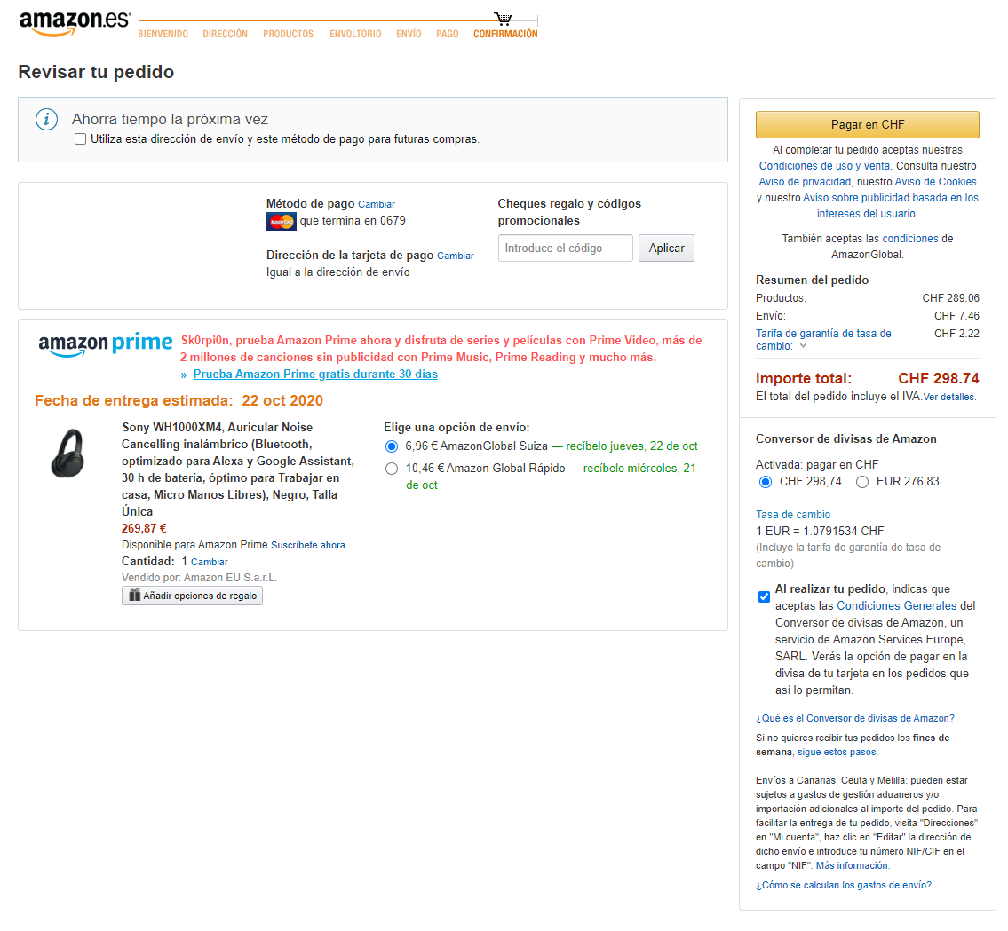 - Für Lieferungen in die Schweiz wird der Preis erst bei Angabe einer Schweizer Lieferadresse richtig angezeigt (Abzug der Mehrwertsteuer, zuzüglich Versandkosten) resp. beim Checkout an der Kasse (Amazon Frankreich, Italien, Spanien und Grossbritannien). Wir verwenden grundsätzlich den Interbanken-Kurs für die Umrechnung in CHF.