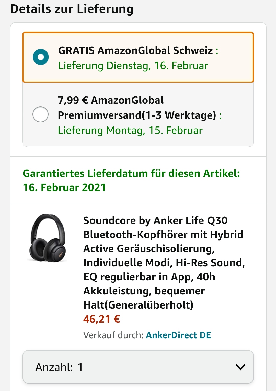 - Für Lieferungen in die Schweiz wird der Preis erst bei Angabe einer Schweizer Lieferadresse richtig angezeigt (Abzug der Mehrwertsteuer, zuzüglich Versandkosten) resp. beim Checkout an der Kasse (Amazon Frankreich, Italien, Spanien und Grossbritannien). Wir verwenden grundsätzlich den Interbanken-Kurs für die Umrechnung in CHF.