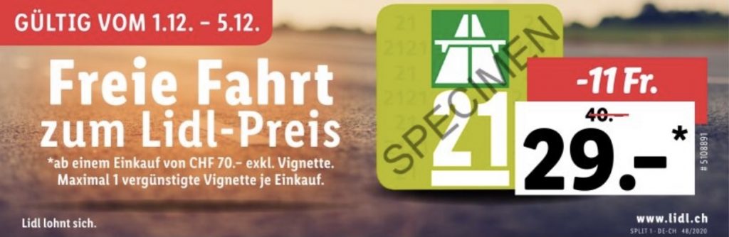 Bei Deindeal gab es die Vignette für Fr. 20.- bereits. Ich glaube es war das letzte Angebot der Wow-Woche. Sie war aber wie immer in kürzester Zeit weg. Dieses Jahr gab es aber nicht einmal Nachschub.