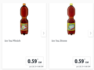Im Lidl wird der Literpreis mit CHF 0.40 angegeben, was somit leicht höher als die Aktionen im Migros und Coop ist.