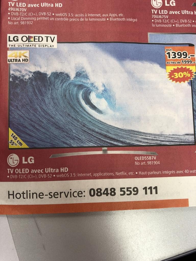 Ankündigung: 55″ OLED Fernseher LG OLED55B7V bei Fust