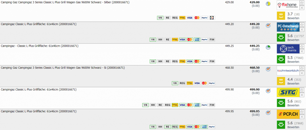 Der Deal gilt ab kommendem Samstag bis am 26. Mai. Bei Jumbo erhält man dann den Campingaz Gasgrill 3 Series Classic L für CHF 199.- Der zweitbeste Preis in der Schweiz liegt momentan bei CHF 429.- Günstiger als für CHF 282.40 gab’s den Grill laut toppreise in der Schweiz noch nie. Leider kostet die Lieferung bei Jumbo stolze 56 Franken! Man sollte den Grill also abholen, um vom günstigen Preis zu profitieren.