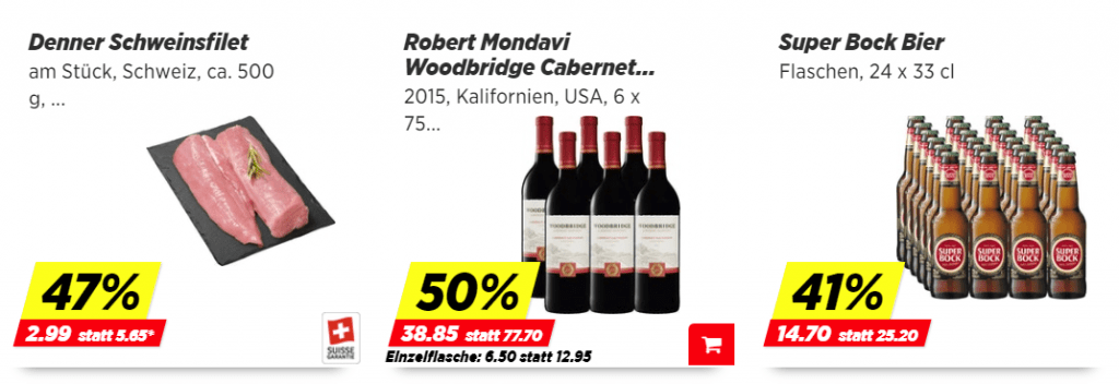 Ankündigung: Denner Wochenend-Knaller: 20% auf Wein, 50% auf Rindsfilet