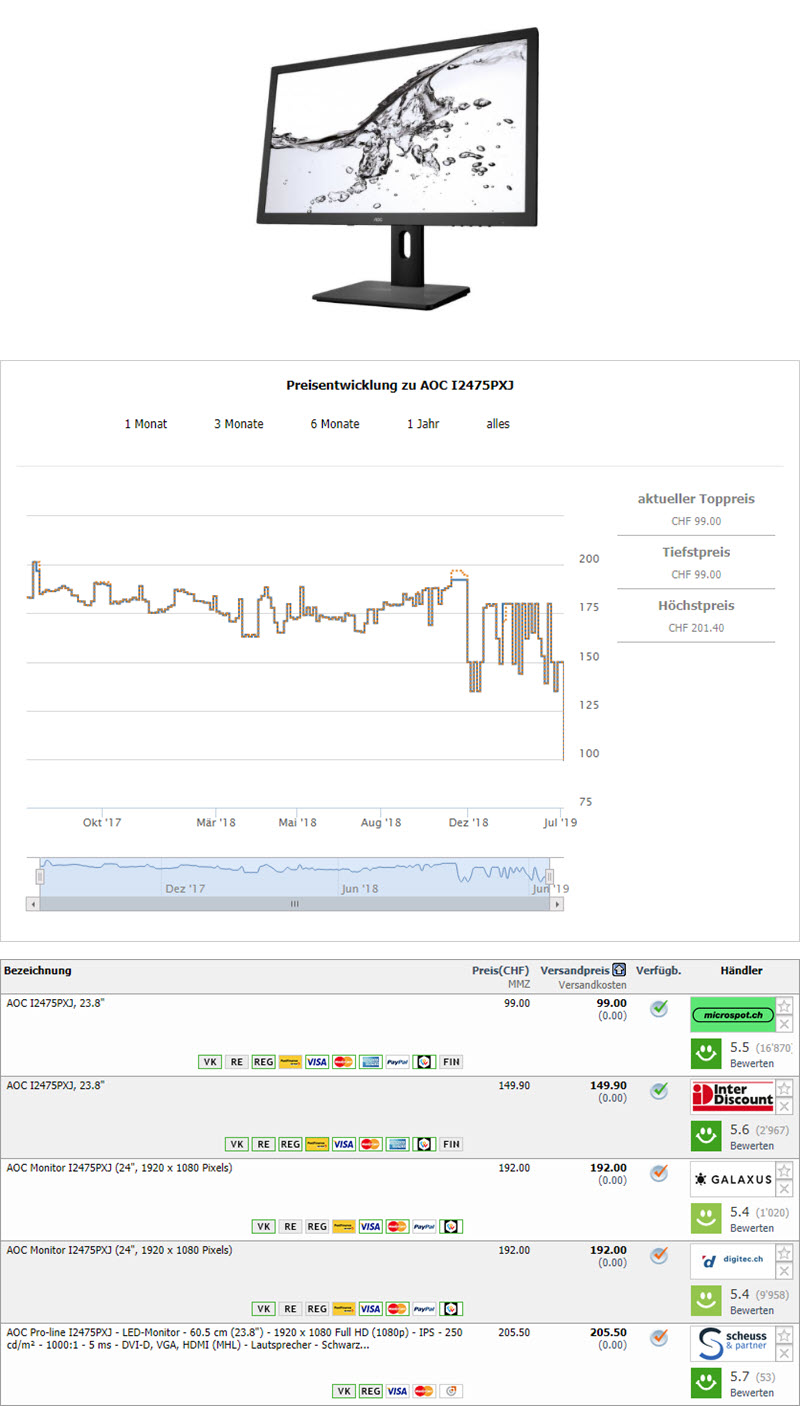 Bei Microspot gibt es momentan den AOC 24″ Monitor I2475PXJ (IPS, 1920 x 1080 Pixels) zum Bestpreis von CHF 99.-.