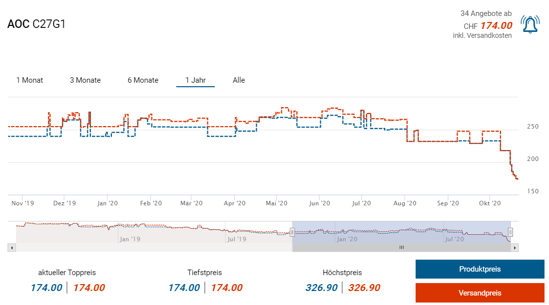 Bei digitec gibts derzeit einen günstigen Full-HD-Gaming-Monitor von AOC zum guten Preis. So zahlt ihr fürs gute Stück Technik 174 Franken, der Vergleichspreis läge laut toppreise bei knapp 239 Franken, bei Amazon ist der Bildschirm aber schon für ca. 220 Franken bestellbar.