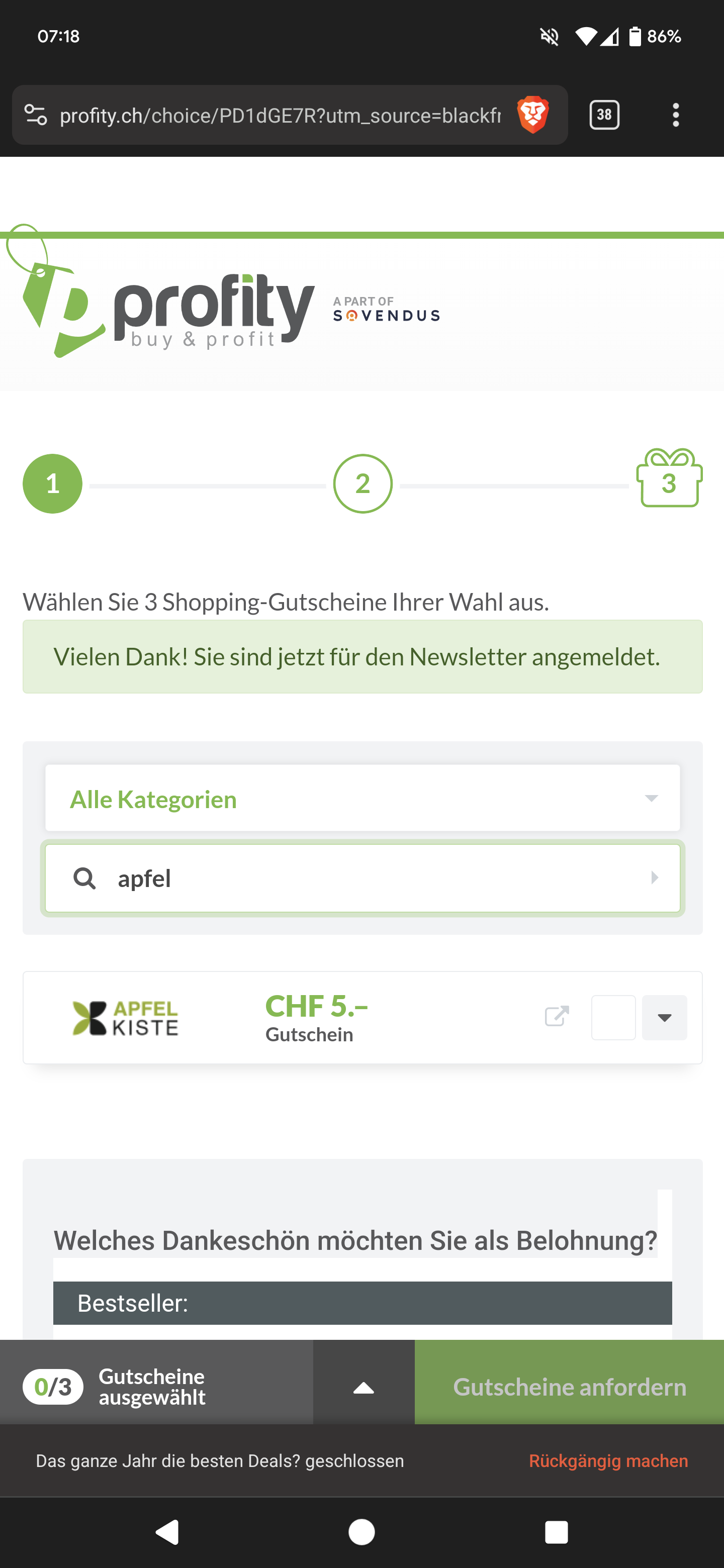Top, über blackfridaydeals Newsletter Abo profity Gutschein für Apfelkiste generieren und dann sogar nur 25.- für 50.- Gutschein