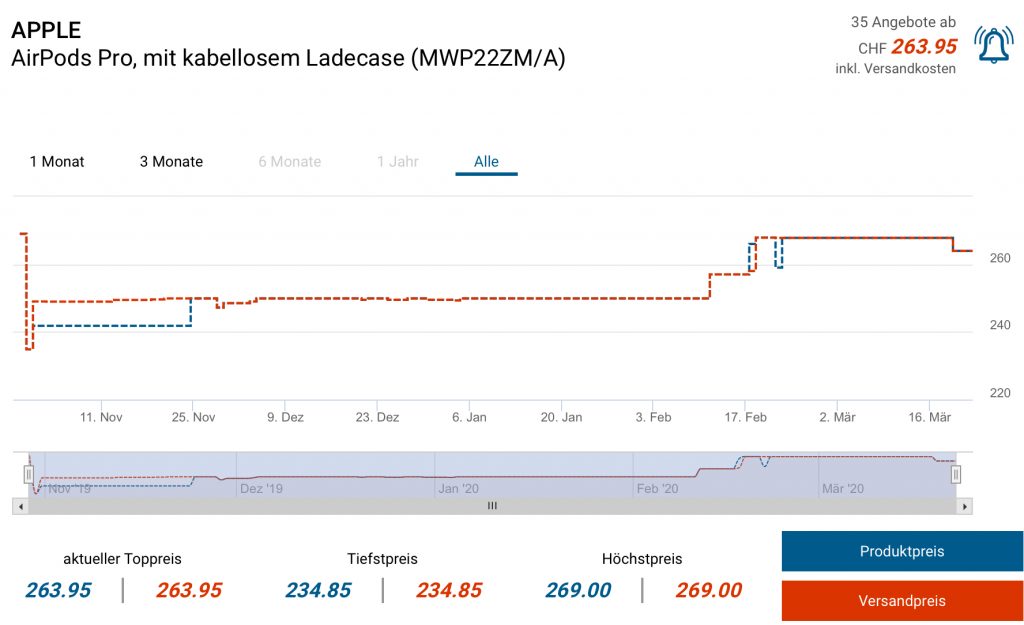 Zweitbester Preis gemäss toppreise sind 263.95 CHF.