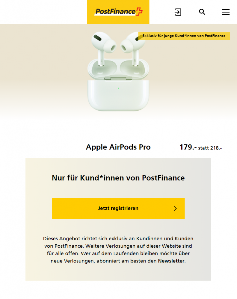Eventuell Interessant für PostFinance Young Kunden: Über den Link kommt ihr zur Anmeldeseite zu dieser speziellen “Membersektion”, wo es immer wieder solche Angebote geben soll.