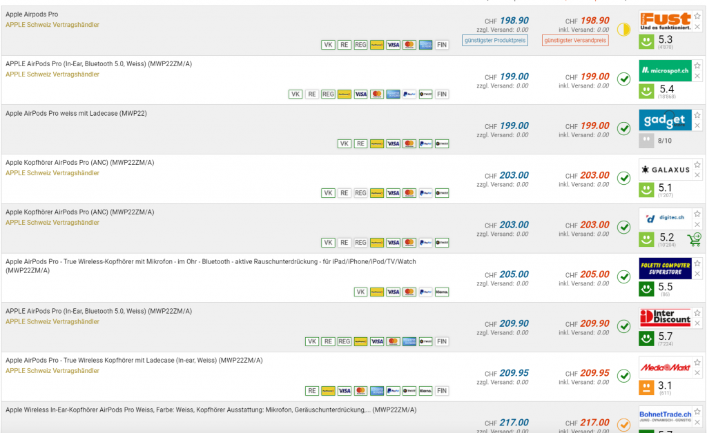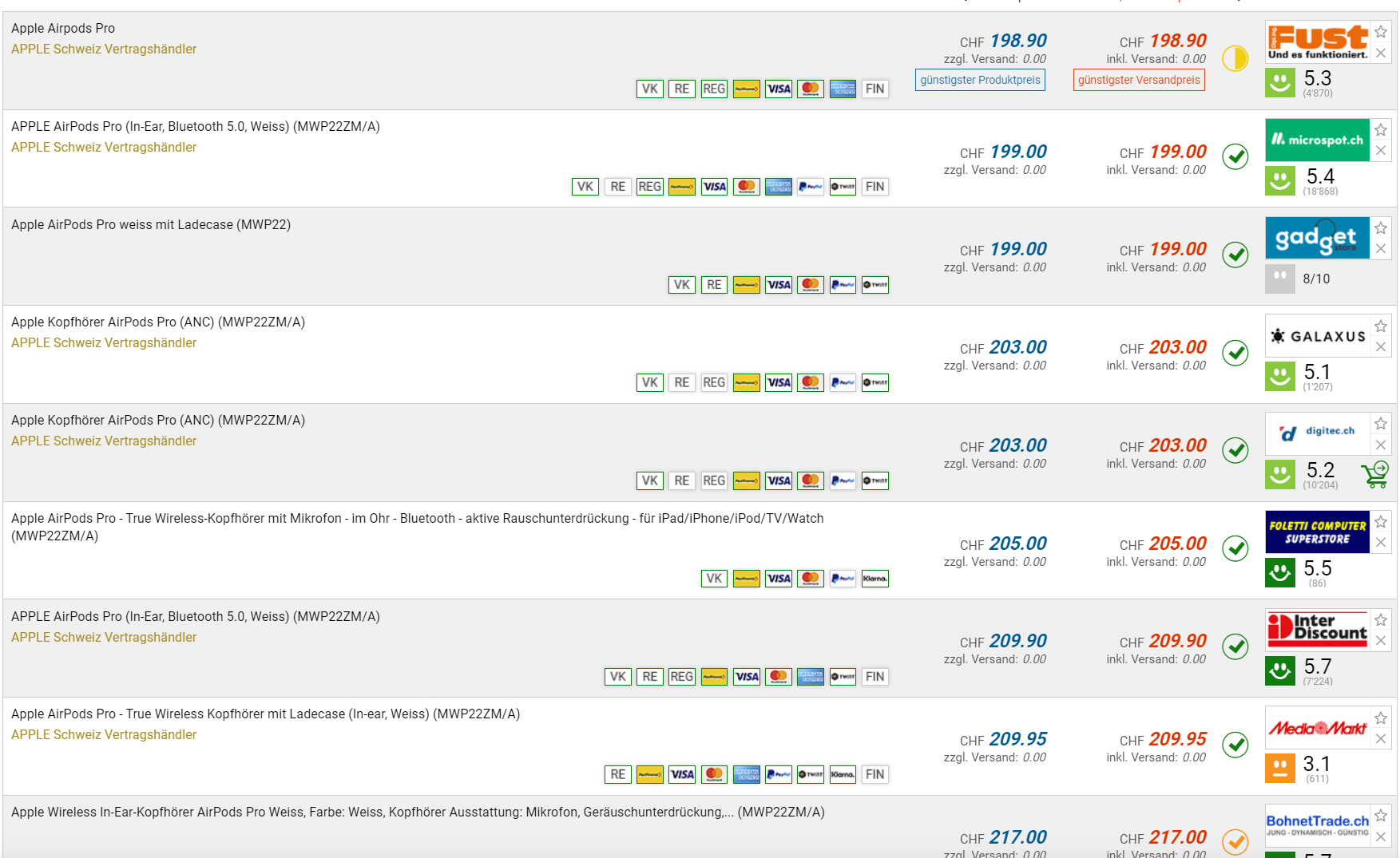 Bei Fust gibt’s gerade wieder einmal die AirPods Pro zum guten Preis von CHF 188.90. Um auf den Preis zu kommen muss man den Gutscheincode EMAR21 beim Checkout einsetzen. Gemäss toppreise soll es sich um einen Bestpreis handeln, auf Preispirat hatten wir die AirPods Pro aber auch schon günstiger drin.