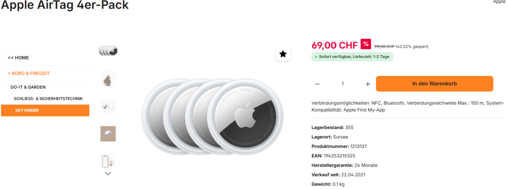 Top-Angebot für alle, die ihre Wertsachen im Blick behalten wollen: Der Apple AirTag im 4er-Pack ist aktuell zu einem besonders günstigen Preis bei Mineshop.ch erhältlich. Perfekt, um Schlüssel, Taschen oder Gepäck zuverlässig zu orten. Jetzt zuschlagen, solange der Vorrat reicht.