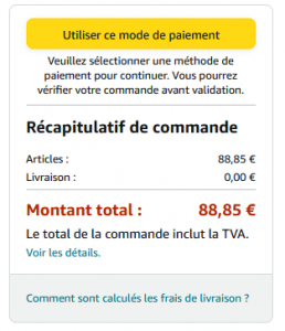 Amazon.fr shows 88,85 € at the very last step at check-out.