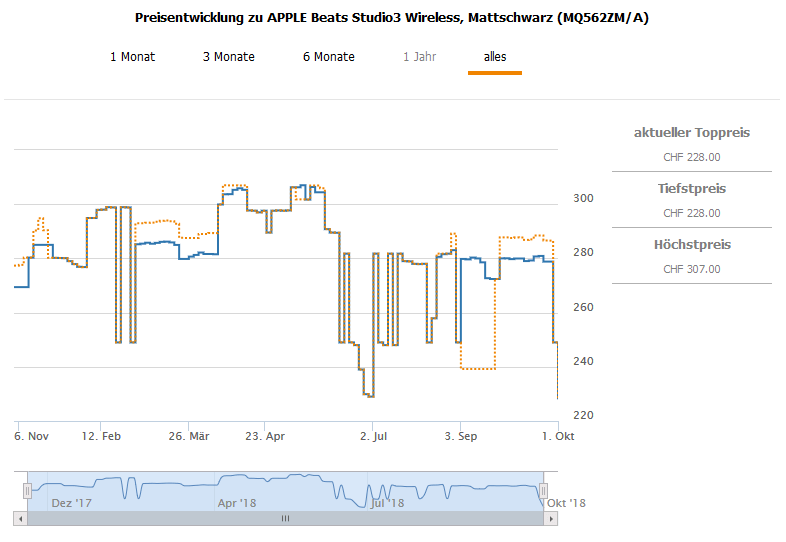 Mit dem Gutscheincode HFWMSP20 kommen wir auf einen Endpreis von 208.- CHF. Best price bislang waren mit dem gleichen Gutscheincode vor ein paar Monaten 209.- CHF. Der zweitbeste Preis liegt aktuell bei 279.20 CHF.