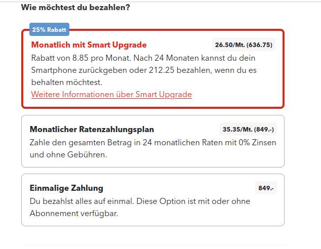 Das neuste iPhone inkl. Smart Upgrade – immer zum besten Preis. -> weiter unten steht ganz klar, was Smart Upgrade bedeutet.