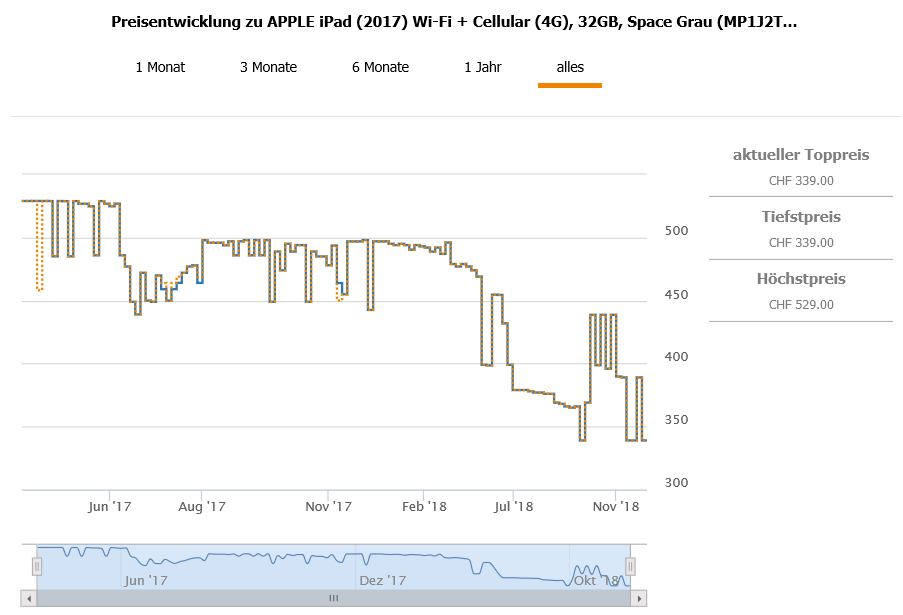 Gemäss toppreise war der best price über alle Farben bislang bei 339.- CHF, der zweitbeste Preis liegt aktuell bei 399.- CHF.