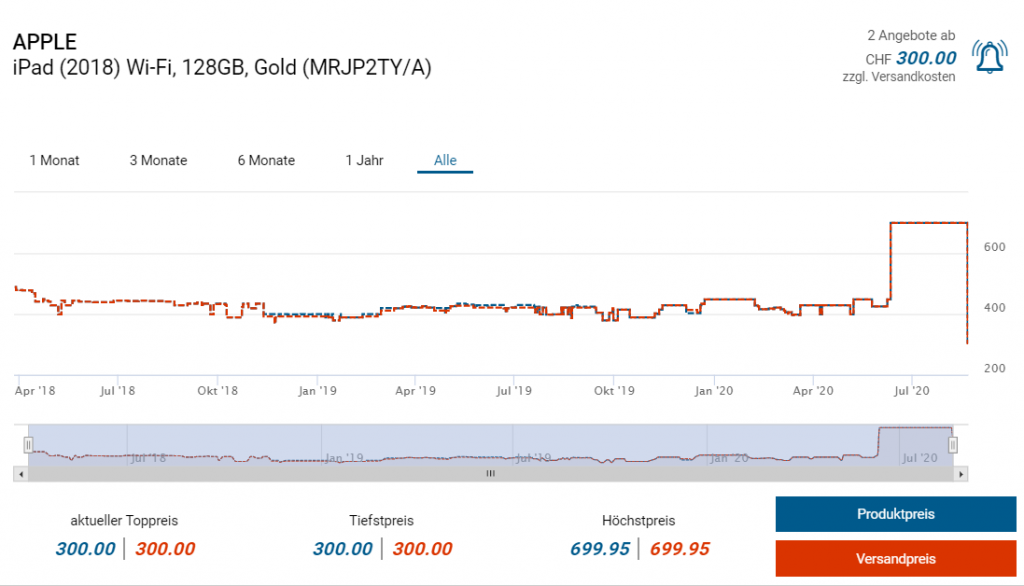 Bei Manor gibts das etwas in die Jahre gekommene aber dennoch gute Tablet von Apple mit 9.7″ Bilddiagonale zum Aktionspreis von 300 Franken. Mit 128GB Speicher ist man auch sicher gut eingedeckt. Den Vergleichspreis gibts von der Space Grau Variante, ist aber meiner Meinung nach zu hoch angesiedelt (zumal es das neue Modell für 449 gibt).