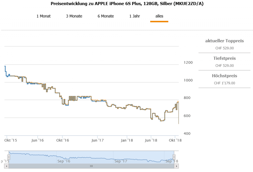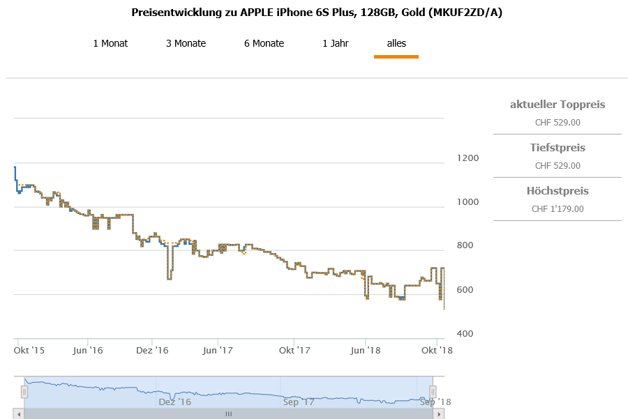 So gibt es auch das APPLE iPhone 6S Plus mit 128GB in verschiedenen Farben für je 529.- CHF.